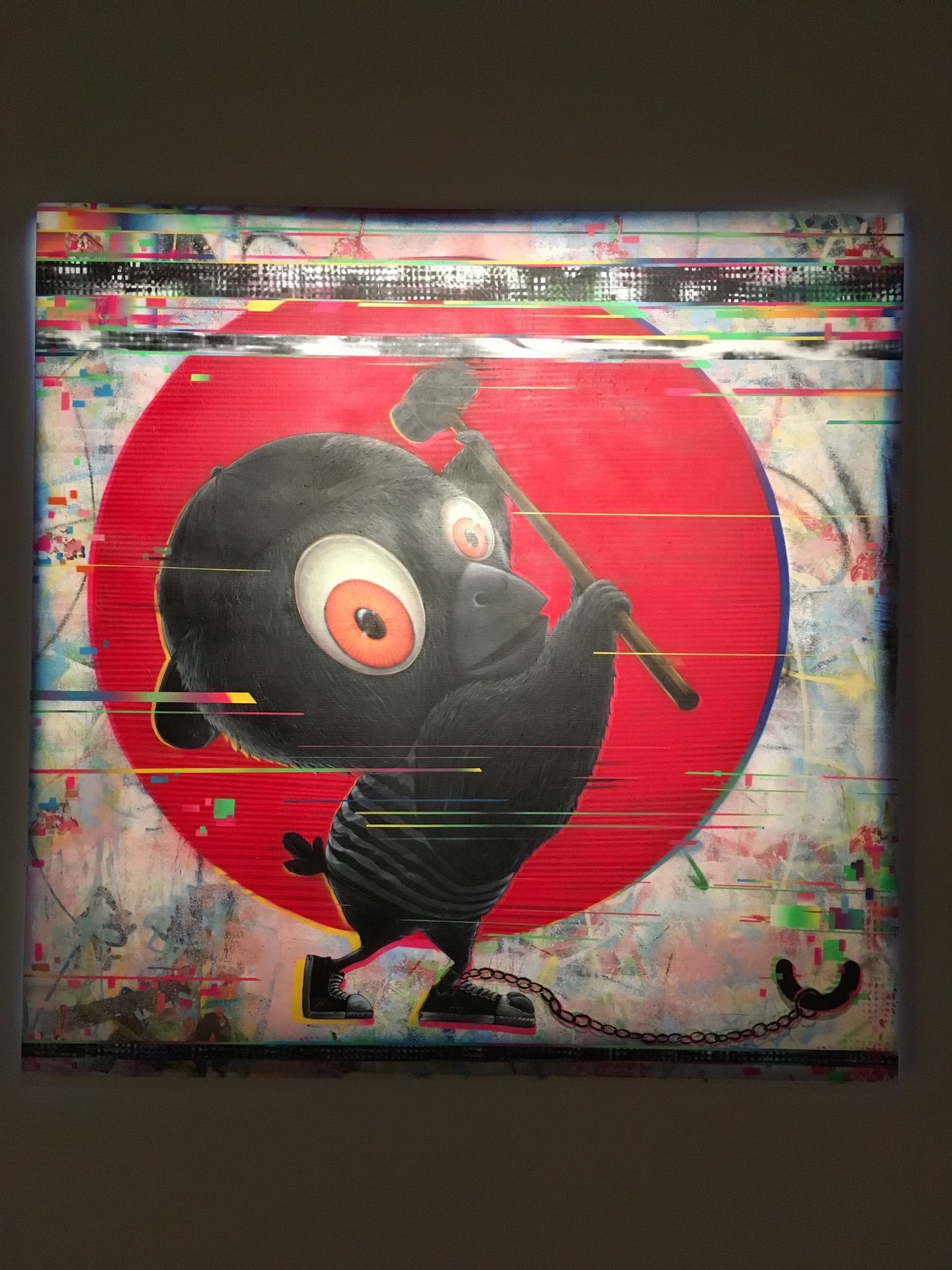 I don’t believe I’ve ever met someone so passionate and articulate about art as Mue Bon. His show, System Error held at the Megumi Ogita Gallery in Ginza, Tokyo (from Oct 20 to Nov 4, 2017) and produced by Souled Out Studios, drew me into a world inhabited by earthbound fowl, monitor admen, dispassionate emojis and social disconnect. I’ve been a fan of his work over the past couple of years, so felt fortunate to talk with Mue Bon and gain a new appreciation for his vision.