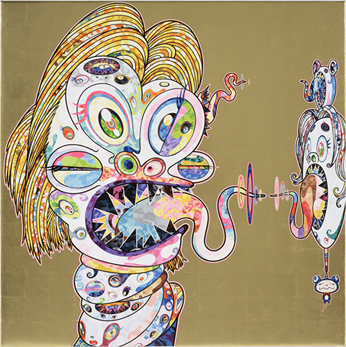 Murakami’s incarnation of the classic Francis Bacon work, Francis Bacon’s Study for Head of Isabel Rawsthorne and George Dyer, 1967. The portraits represent Bacon’s muse/romantic interest, George Dyer, and close friend and confidante, the artist Isabel Rawsthorne. Enjoy Murakami’s interpretation of these classic works today! Read more about the Bacon prints here in Unscrambling the Bacon.