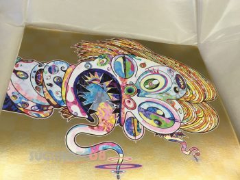 Murakami’s incarnation of the classic Francis Bacon work, Francis Bacon’s Study for Head of Isabel Rawsthorne and George Dyer, 1967. The portraits represent Bacon’s muse/romantic interest, George Dyer, and close friend and confidante, the artist Isabel Rawsthorne. Enjoy Murakami’s interpretation of these classic works today! Read more about the Bacon prints here in Unscrambling the Bacon.